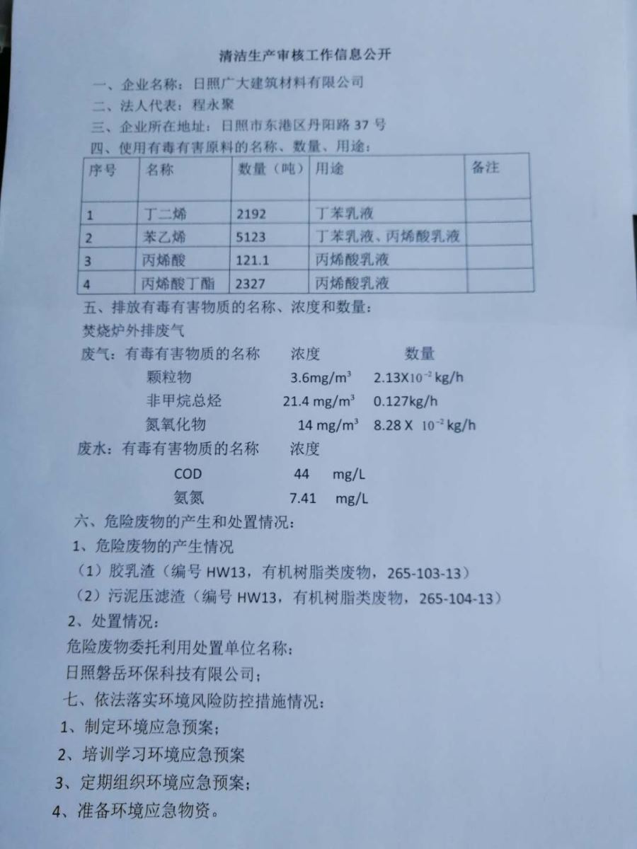 日照廣大建筑材料有限公司,位于風(fēng)景秀麗的海濱城市山東日照,成立于1988年,是專業(yè)生產(chǎn)高分子化工產(chǎn)品,集科研開發(fā)、生產(chǎn)經(jīng)營為一體的化工企業(yè),主要產(chǎn)品為丙烯酸脂類乳液和丁苯膠乳。是國內(nèi)目前江北同行業(yè)產(chǎn)銷量最大企業(yè)之一。